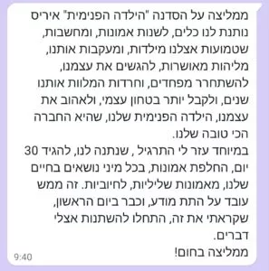 זו לא עוד סדנה, זו סדנה שממש מטפלת בבסיס ויורדת פנימה ומטמיעה בתוך תת המודע